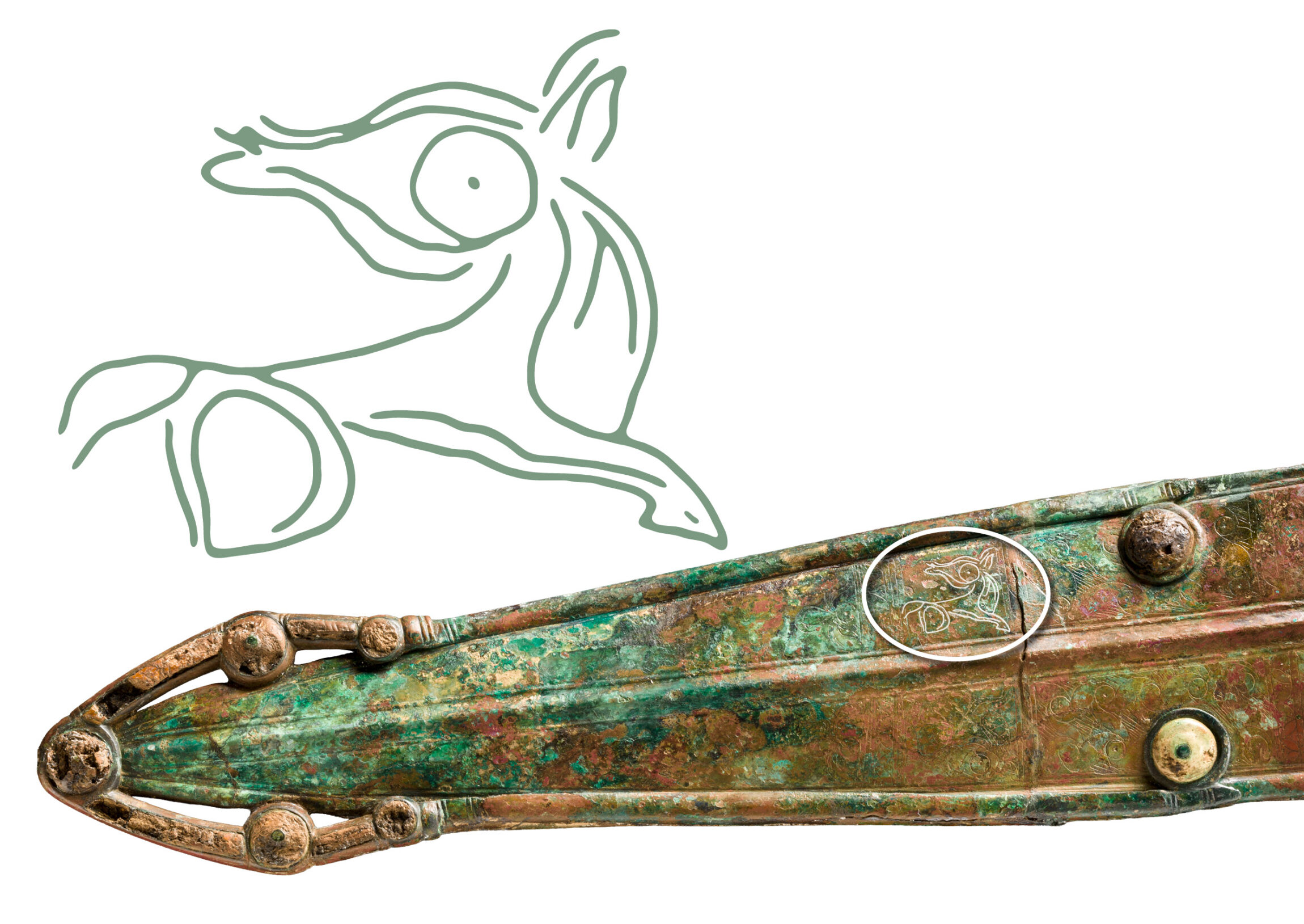 Der maecenas erlaubt sich, aus besagtem Teilchen ein Pferdchen zu machen und im gestreckten Galopp mit einer Annahme zu einer weiteren Lücke zu springen: Die Tiergravur auf der bronzenen Schwertscheide des „Keltenfürsten“ stellt mit Vorderhuf, aber rätselhaftem Hinterteil und vogelartigem Kopf auf rückwärts verdrehtem Hals eine Mischung aus Pferd und, nun ja, Schwan dar: ein sogenanntes Sonnenpferdchen? Ein keltisches Tiersymbol, das mit griechischen Mythen verschmolzen ist? Wem schwant, worauf das „Pferdchen“ hindeuten könnte? Auf Lohengrin wohl nur im Allerentferntesten. Helios und Apollon, die Sonnengötter mit Rössern und Schwänen, lägen da schon näher. Diese Lücke lässt Raum zum Anknüpfen.